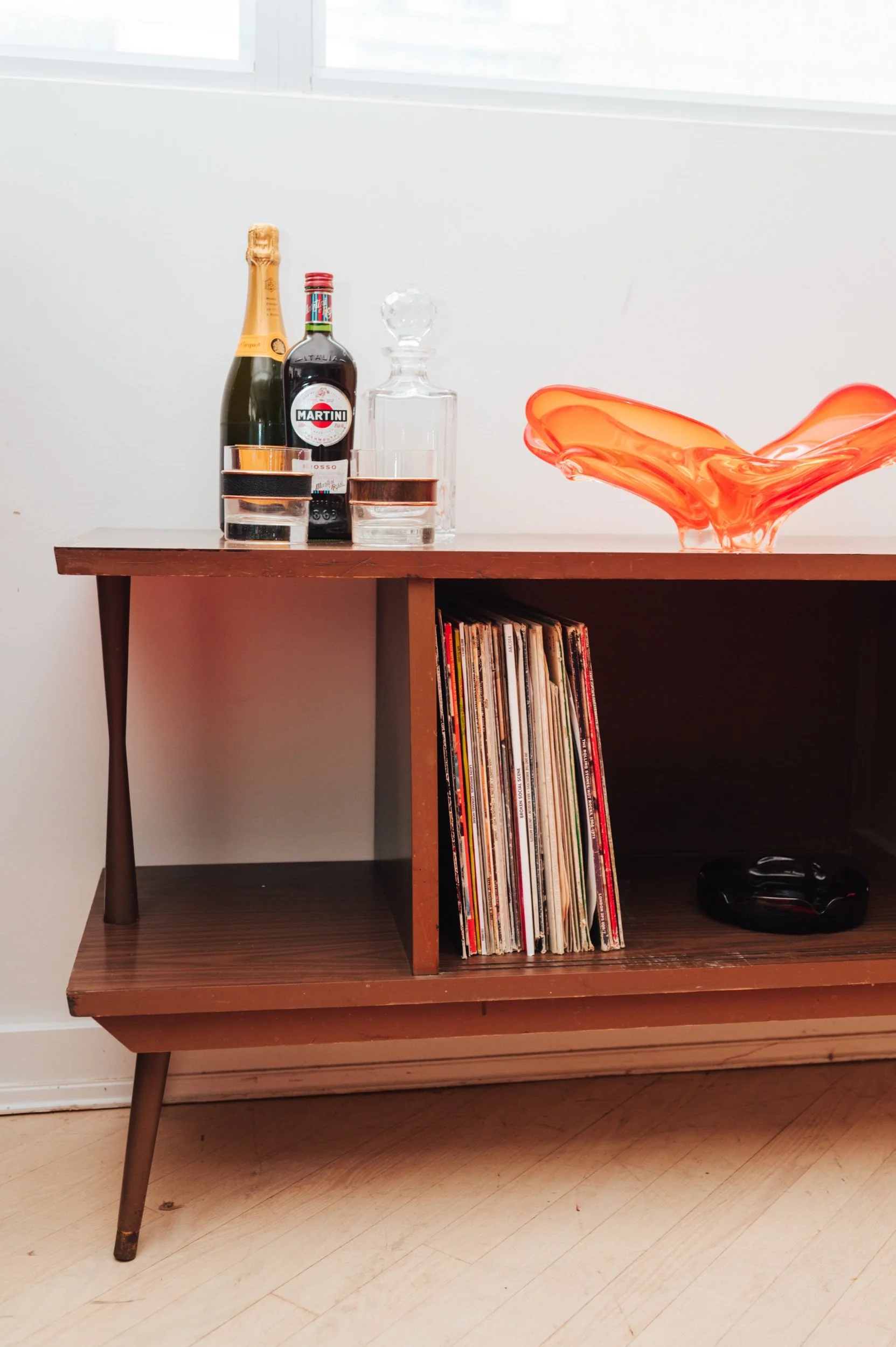 Great for vinyl collectors or anyone wanting a low, graphic piece to ground a room. Works especially well layered with objects, stacked books, and sculptural decor.